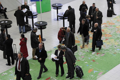 Verder is treffend dat een meerderheid van de beurspresentaties er een stuk fraaier uitziet dan afgelopen jaar. “Je kan zien dat er vorig jaar heus goed geld is verdiend,” aldus een prominente bezoeker uit ons land. Marcel Kies van Amorim onthult als bijzonderheid een speciaal partnerschap tussen Amorim en BASF op het vlak van een milieuvriendelijke lijm. “Het is niet zo druk dit jaar, maar wat telt is dat de belangrijke mensen er allemaal zijn,” zo beoordeelt Kies de huidige Domotex. Dominiek Frees van Par-ky is content met de beurs. “Wij tonen niet zoveel nieuwigheden, de nadruk ligt bij ons nu onder meer op het uitwerken van het Silencioso-programma. Wat me verder opvalt is dat er wat minder Nederlandse detaillisten te zien zijn.” Stanislava Slavova van Faus signaleert juist veel bezoekers op de stand van de Spaanse laminaatmaker. “We hebben ons best gedaan om een kwalitatief mooie stand neer te zetten, inspelend op de ‘branding’ van het merk Faus. Wij richten ons hier met succes op bezoekers uit Nederland, maar ook uit Frankrijk en natuurlijk Duitsland.” Veel drukte ook valt waar te nemen bij de stands van Tarkett, Forbo en zeer zeker ook bij de Nederlandse tapijtfabrikanten. Object Carpet trekt op ‘contractworld’ de aandacht met de introductie van de nieuwe tegelcollectie Quadramodul. Enia Carpets profileert zich als totaalaanbieder voor particulier en project en presenteert onder meer de luxe nieuwe Enia L2 Collection. “Het belooft een goede beurs voor ons te worden,” zo zegt Orlando Ramakers namens Invista. “Veel drukte, veel diepgaande gesprekken met afnemers. Wat wij hier communiceren is ten eerste dat Antron zijn vezels onder één noemer heeft gebracht als ‘Antron Carpet Fibre’ en ten tweede de voordelen van het gebruik van dit kwaliteitsproduct.”